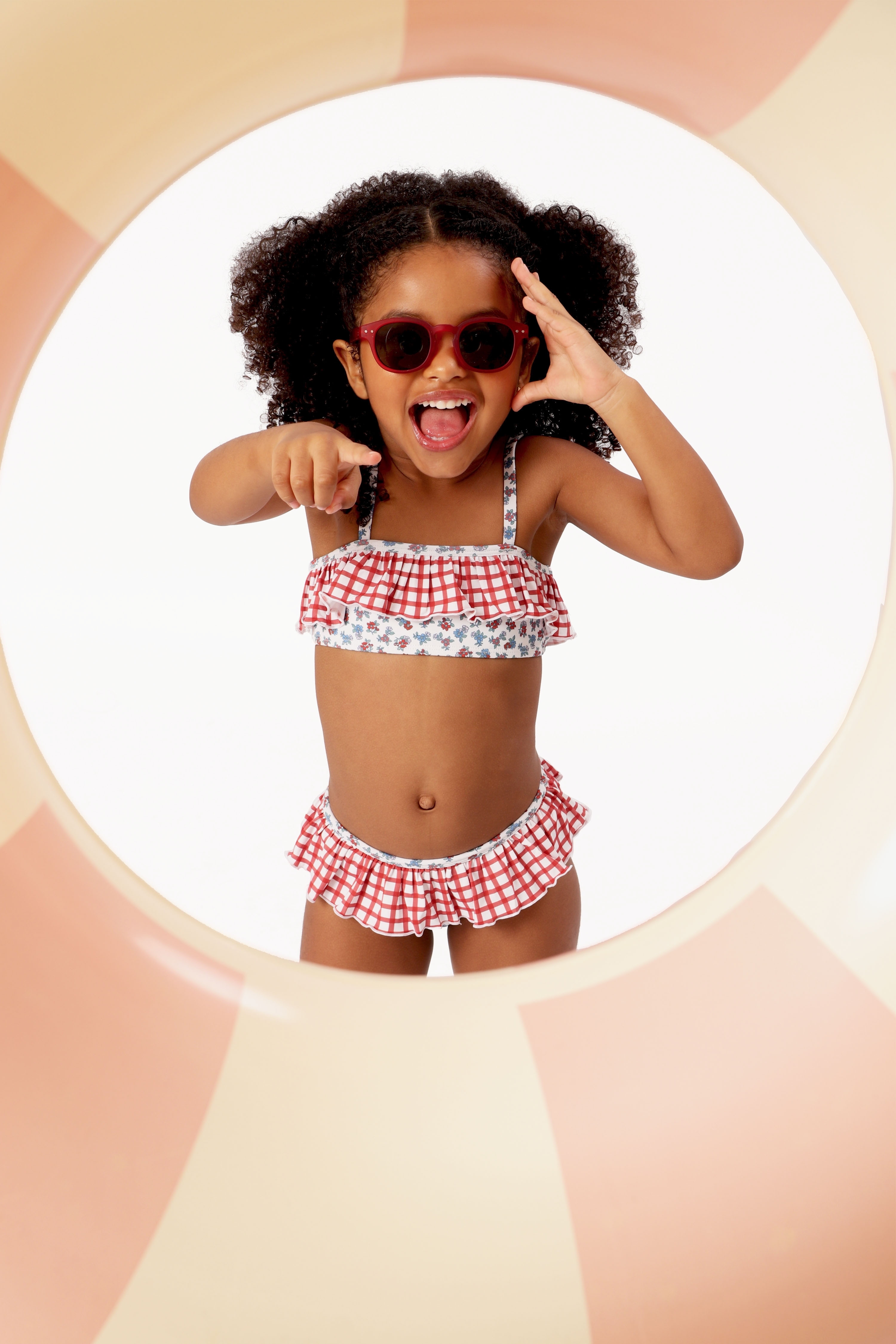 O Biquíni Anne Floral tem estampa delicada e modelagem com babados no top e na calcinha, trazendo um toque romântico à peça. As alças do top são reguláveis, garantindo conforto e liberdade para brincar o dia inteiro.