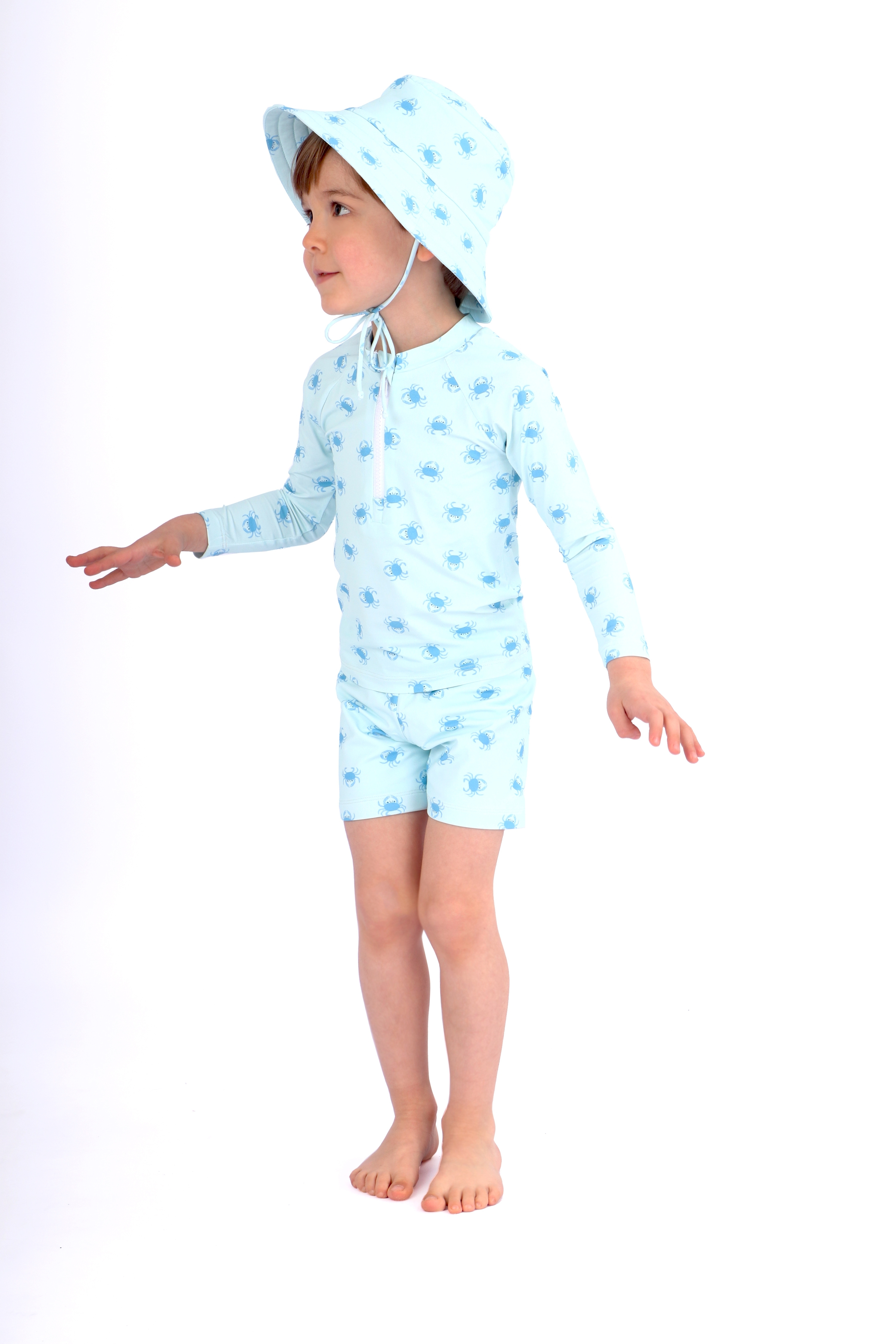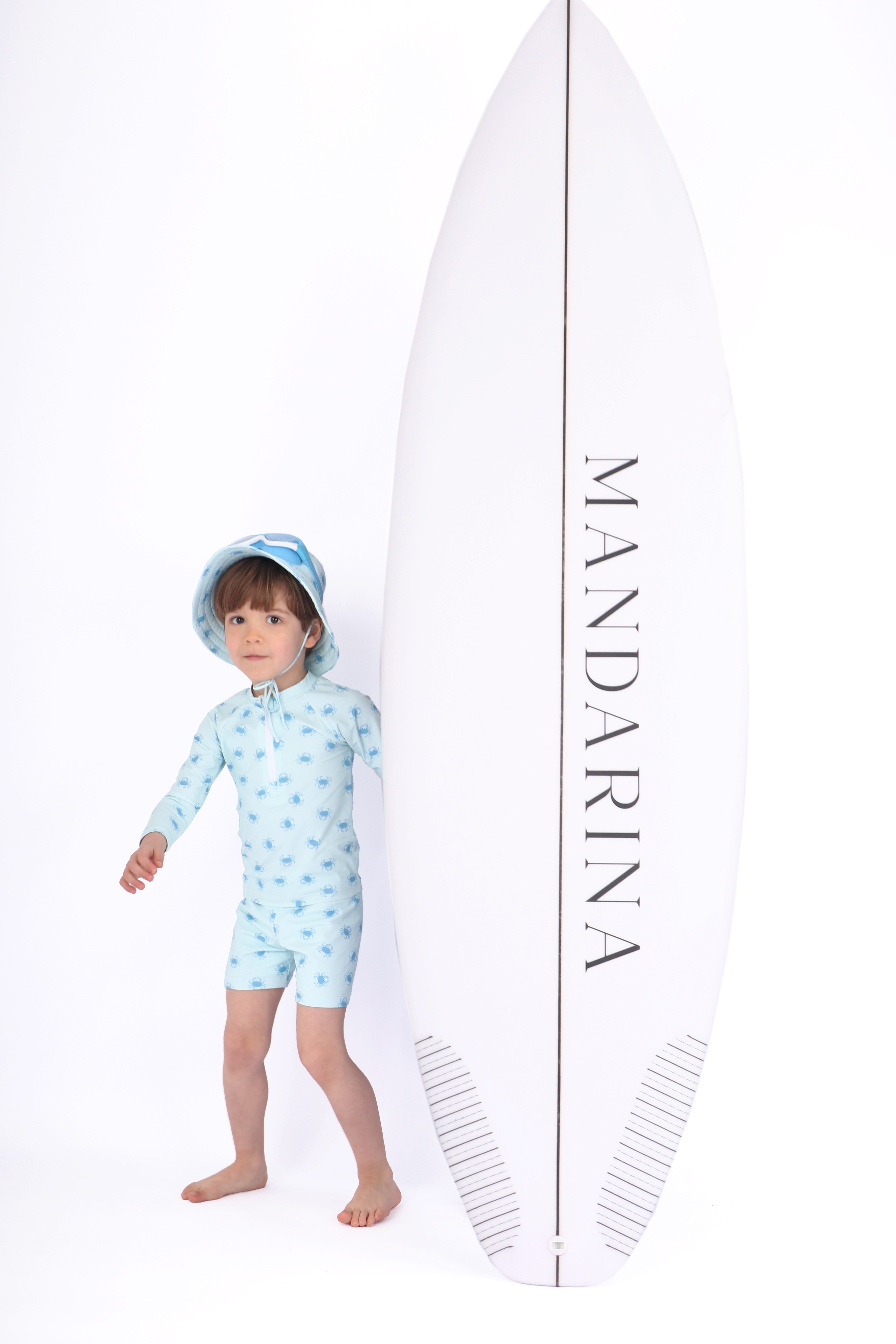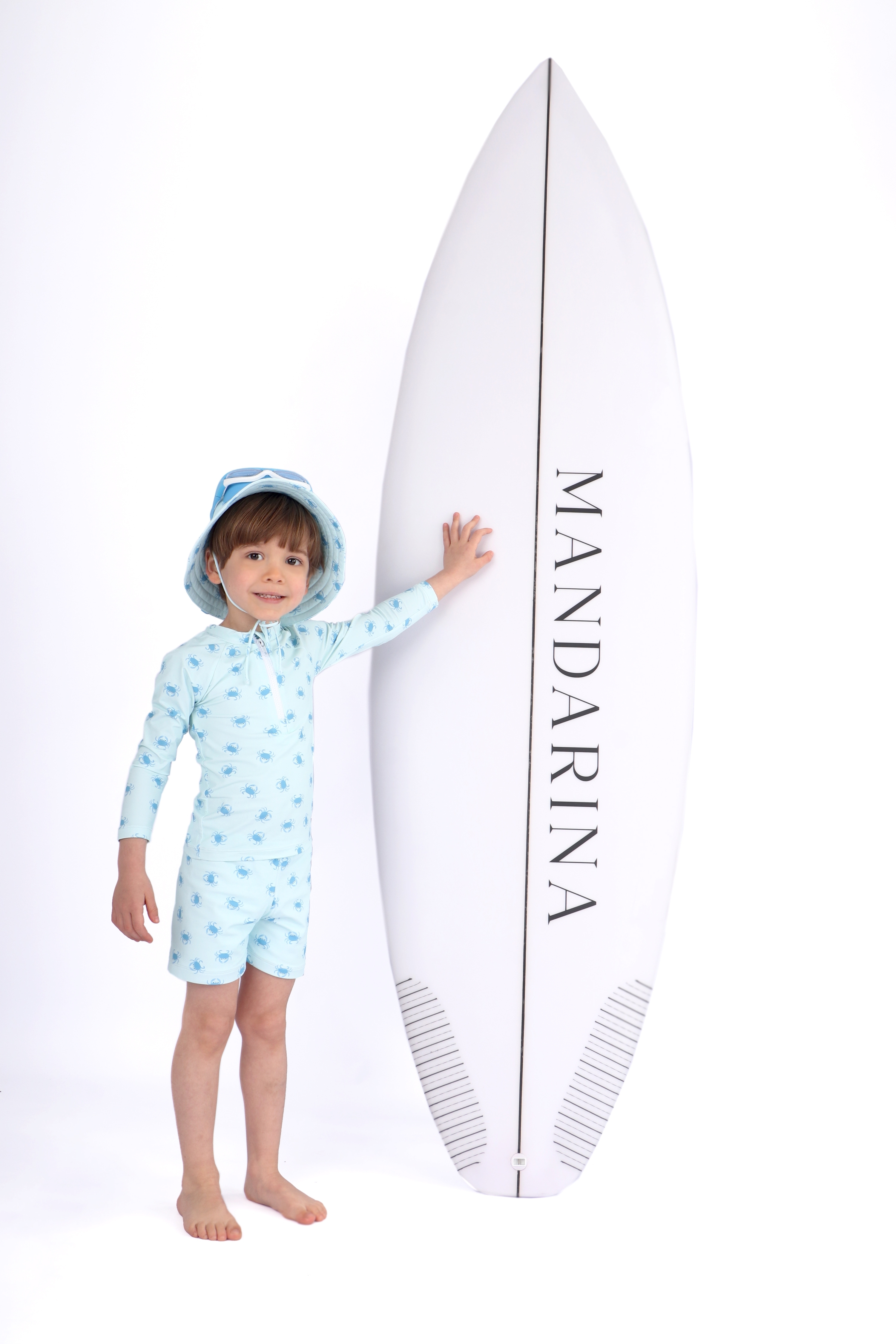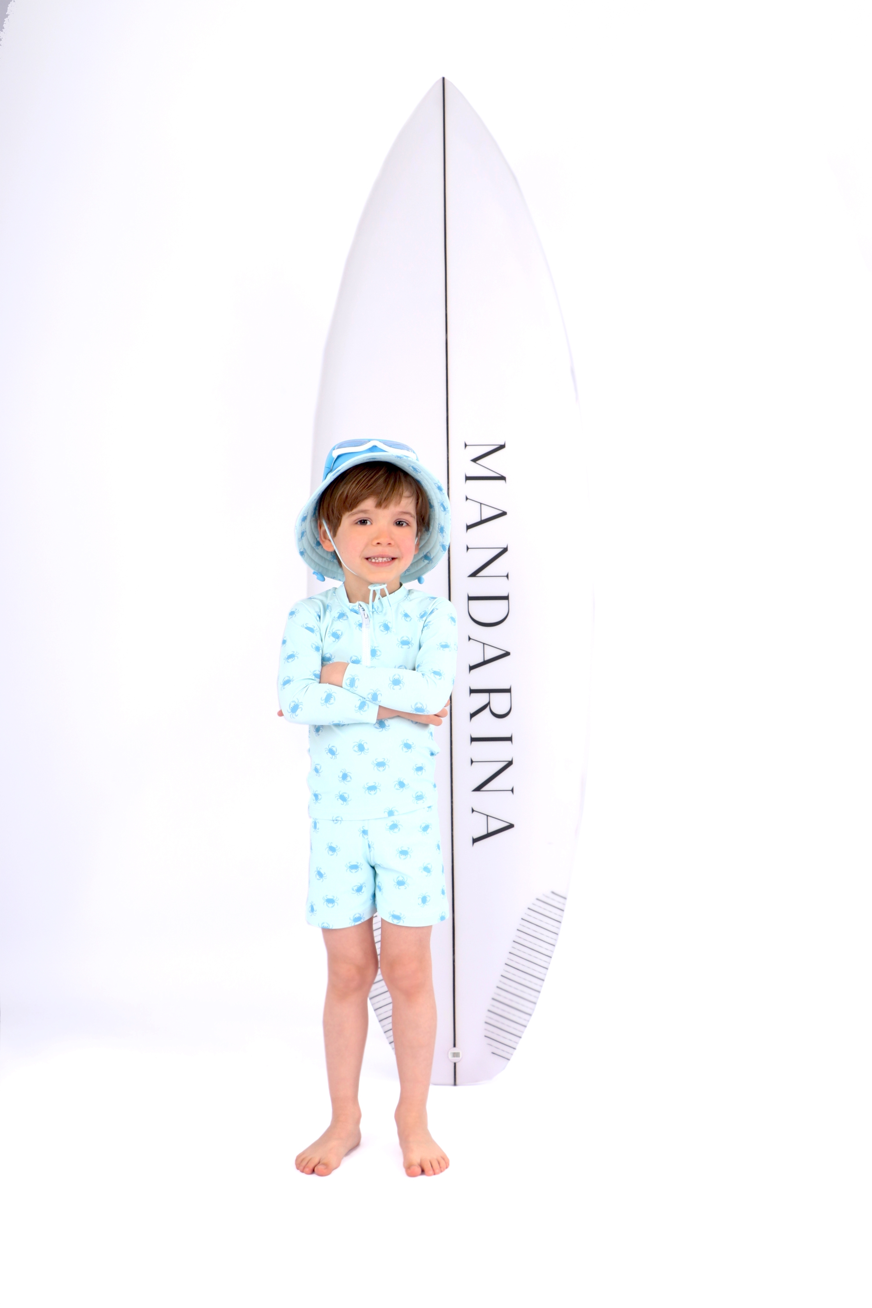 O Conjunto UV é composto por camiseta de lycra com manga longa e zíper na gola junto a uma sunga estampada. Um look completo para os pequenos curtirem o verão com conforto e segurança.