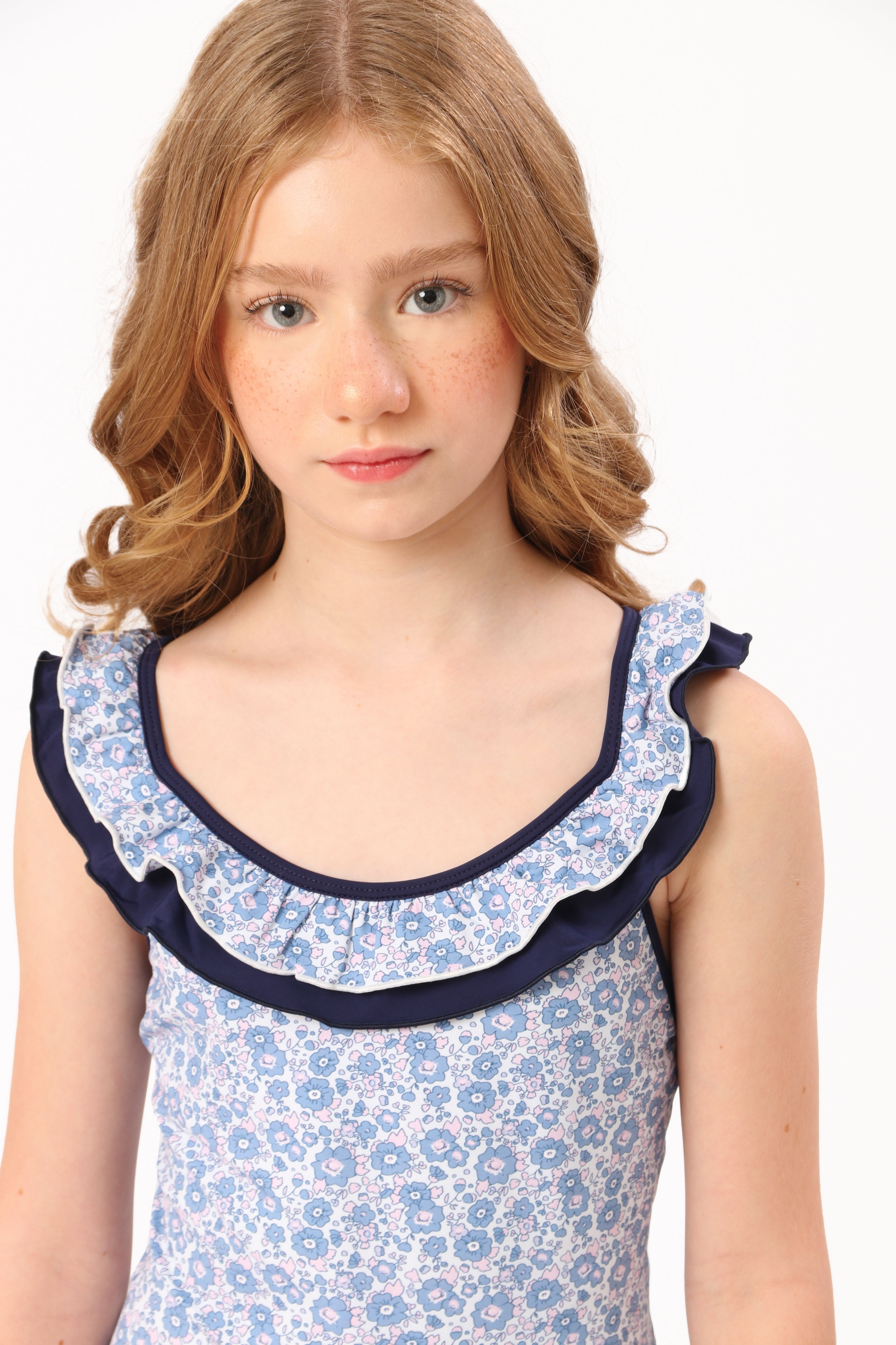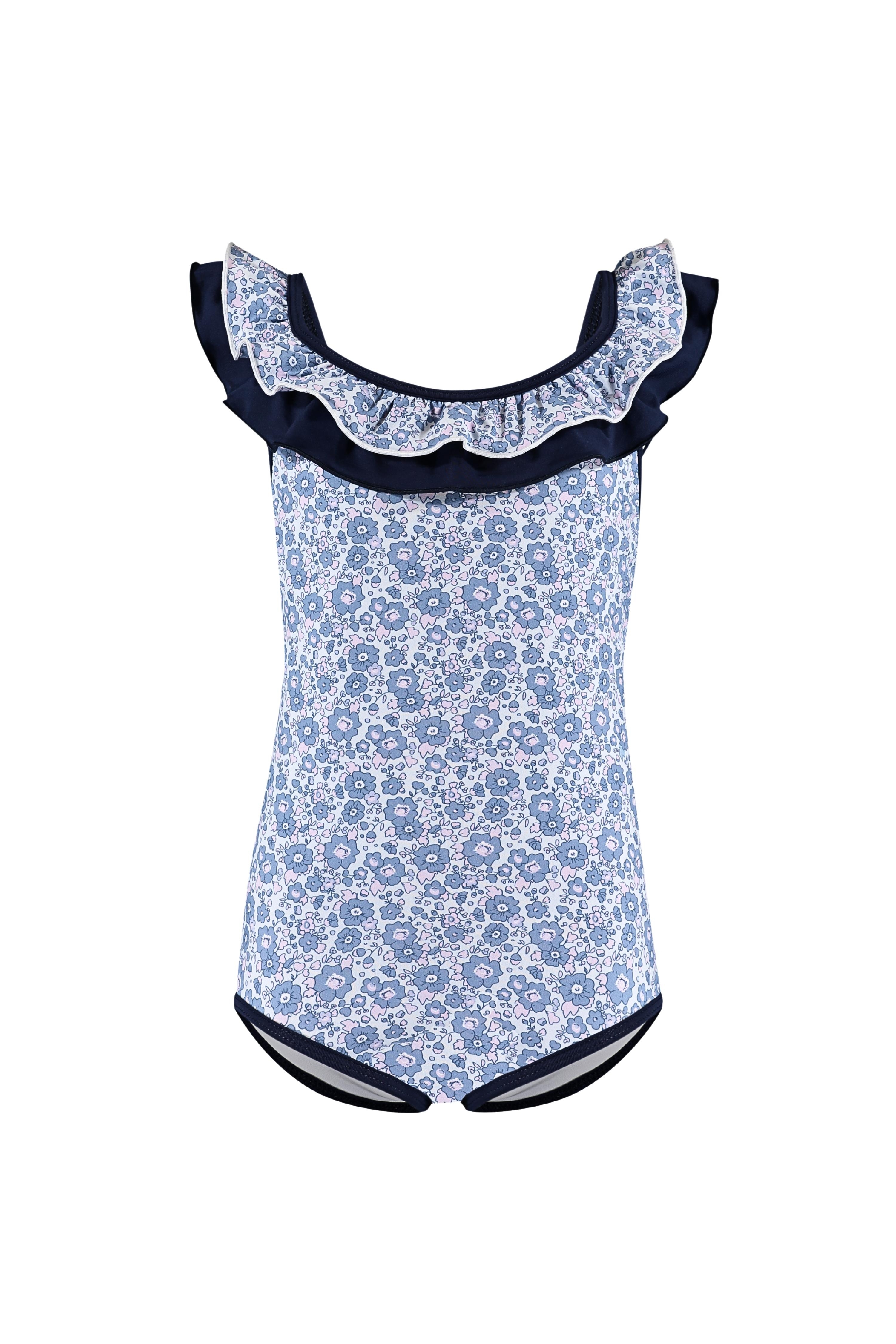 O Maiô Grace Lilac Bloom tem estampa floral lilás com babados no decote e nas costas — um visual delicado e encantador, com toque macio e caimento leve.