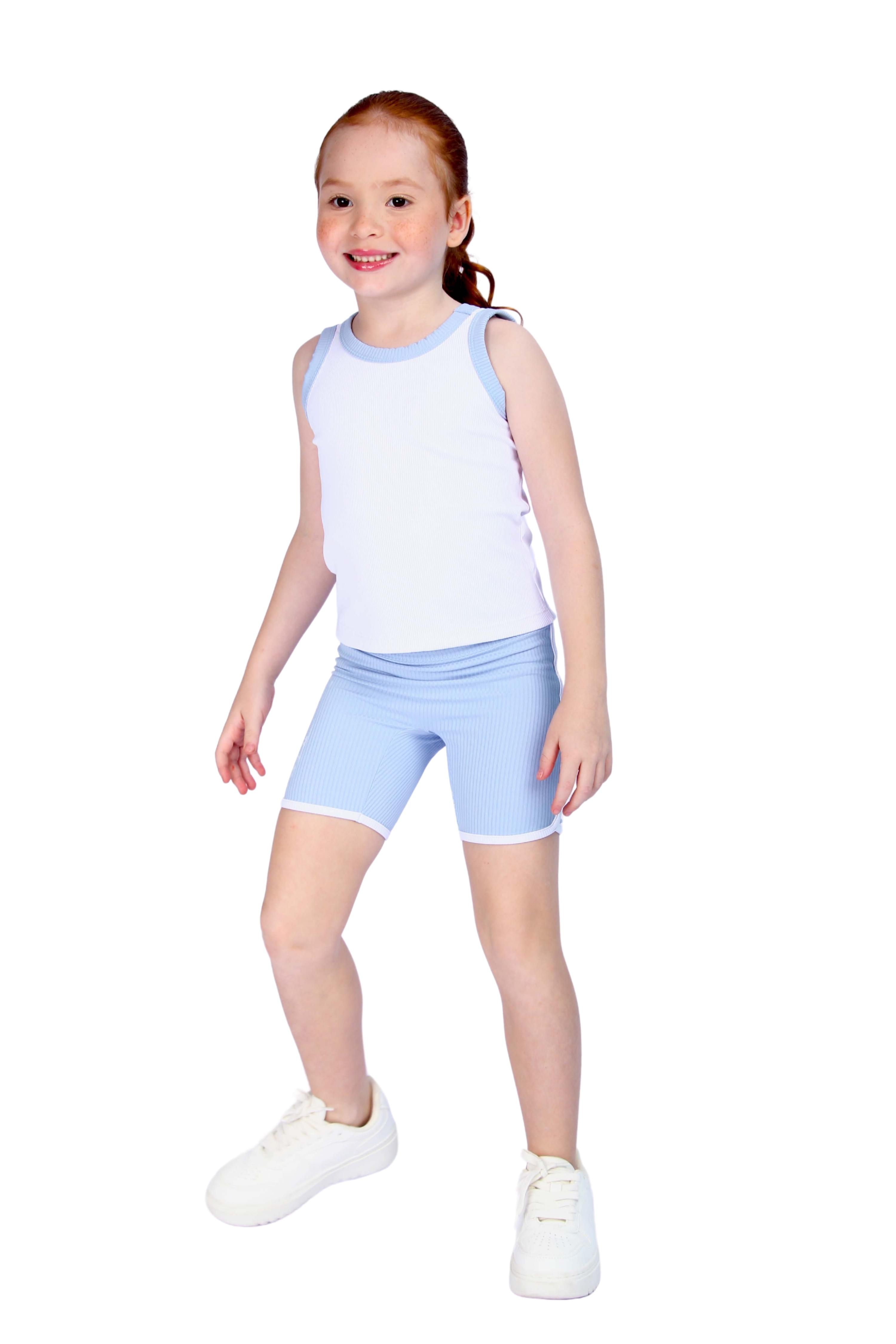 O Shorts UV Feminino Canelado Azul é uma peça cheia de charme, produzida com tecido canelado de alta qualidade, oferecendo estilo e conforto.